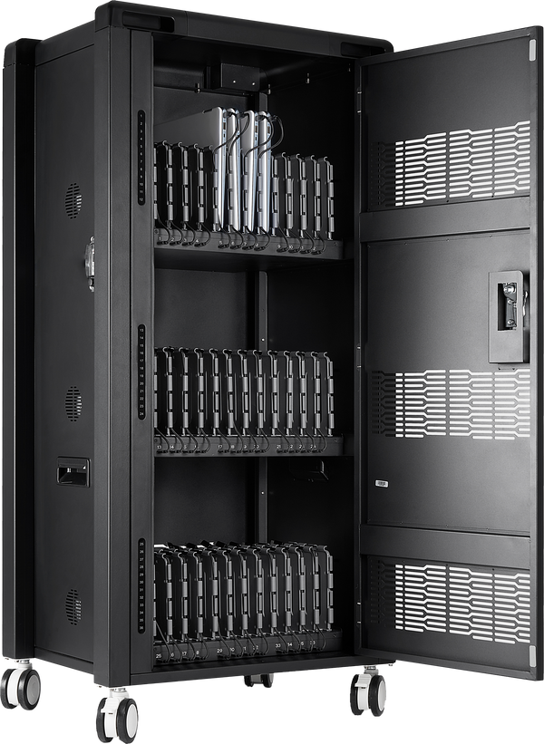 Charging multiple tablets/laptops has never been easier. With its generous capacity, the cabinet allows you to charge several devices simultaneously, ensuring they are ready for use whenever you need them. No more worrying about finding outlets or dealing with messy cables – this cabinet offers a neat and organized charging solution. Our charging cabinet also incorporates intelligent charging technology, so each tablet receives the optimal power it needs, preserving battery life and minimizing energy consumption. You can rest assured that your tablets are charging efficiently and safely.