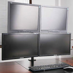 • FULLY ADJUSTABLE: All four monitor mount arms can tilt up or down 90 degrees, swivel 360 degrees left and right on a total of 3 different joints, and all monitors can rotate 180 degrees in either direction to be placed and held in either landscape or portrait orientation independent of one another. Monitors can be height adjusted along the 30" inch center pole.