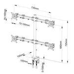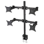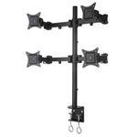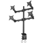 • FEATURES: The quad monitor mount is made of heavy-duty steel and has integrated cable management clips on each arm to keep your cables organized. Comes with a sturdy, double C-clamp base mount for use on desktops up to 4" inches thick.