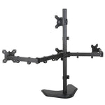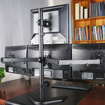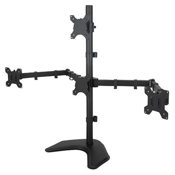 This high-quality ergonomic articulating Heavy-Duty Pyramid Quad Monitor Free Standing up to 24" allows users to manage multiple programs/spreadsheets simultaneously, increasing their productivity. This unique designed stand offers users complete flexibility to reposition their monitors for maximum comfort and optimum viewability. A perfect solution for limited space applications by removing clutter from the desktop, using workspace effectively, and mounting LCD monitors conveniently.