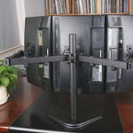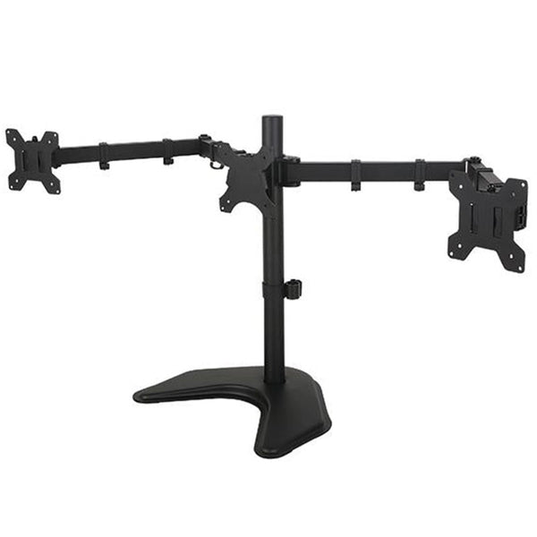 • Clear up valuable desk space by winning back the area that three individual monitors would require. Integrated cable management is included to keep AV and power cords clean and organized via clips along the arms and center pole.