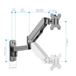 • FULLY ADJUSTABLE: Single VESA wall mount can +35°~-35° tilt, +90°~-90° swivel, 11 inch raise and/lower - and screen has 360 degree rotation. Turn hex bolt on top of computer monitor arm to adjust the gas spring tension to hold screens in place.