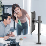 Clear up valuable workspace on your desk with this sleek monitor mount. This monitor mount is height adjustable and can swivel and tilt to help place your monitor in the ideal position. This adjustable mount is the perfect fit for anyone who wants to easily adjust their viewing height to an ergonomic level which in return can help reduce neck, back, and eye strain. It's widely applicable and can be used in both offices and homes. If you'd like your monitor is endowed with more flexibility on height, tilt, swivel, and rotation, this model would be a perfect choice for you!