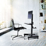 Reap the ergonomic health benefits of this stand-up workstation which is mobile also due to high-quality lockable wheels. The height-adjustable mount allows the monitor to be perfectly positioned to your liking while sitting or standing. MCT-08 workstation includes a sliding keyboard shelf and optional CPU holder, Printer shelf, Basket, Electrical socket. Designed with 4 casters, 2 of which are lockable, this cart can be to be stationed in one area or wheeled wherever necessary without difficulty. In addition to being height adjustable, the mount tilts and rotates with ease to be viewed in either portrait or landscape orientation. Use this ergonomic cart in your office, school, or another professional setting as a workstation that is constructed to meet your needs.