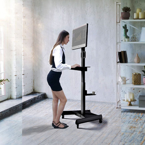 • MOBILE COMPUTER CART - This tall, 67" computer cart is the perfect stand-up option if you need to mount your monitor, keyboard, and CPU on a rolling stand.