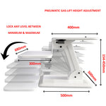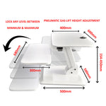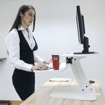 • QUICK TRANSITION - Go from sitting to standing in one easy smooth motion with strong spring force and it can stop at any level as per your comfort. Adjust to your proper comfort level by squeezing the pressure handle (adjustable range: 6” to 17.5” from the tabletop).