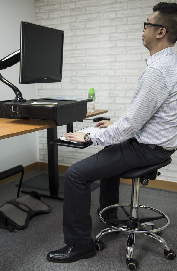 This Sit-Stand Seat positions the user in an upright stance that is known to encourage upper body movement and deeper breathing. Together these have the potential to improve overall circulation and increase the alertness of the user. The upright stance also naturally realigns the spine and reduces the potential for lower back pain which is often associated with extended sitting.