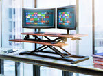 Enhance your work experience with a wooden Desk Riser. Transitioning between sitting and standing throughout the long workday provides numerous health benefits for the body such as increased blood flow and reduced aches and pains. This solidly built desktop supports up to 33 lbs, easily holding multiple monitors or laptops and monitor combinations. It also features a pneumatic spring lift that allows simple and smooth height adjustment (4.2” to 19.7”) at the squeeze of a handle.