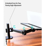 Elevate your work to a more convenient and ergonomic position. With this stand's long arms and articulation, finding the optimal angle is easy. High-grade steel construction along with the heavy-duty C-clamp ensures your laptop will be kept secure. Mount can be converted to a monitor stand with VESA compatible and supports the majority of laptops and monitors on the market.