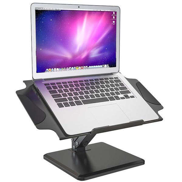 • FOLDABLE, PORTABLE & PRACTICAL: The laptop stands for desk comes with a "Z" design. It can quickly fold into a portable piece with a simple squeeze of a lever. The foldable laptop stand can be stored more conveniently, saving space. You also can put the stand in the backpack and carry it around for use in the office, meeting, Lab, kitchen, and music playing house to hold the laptops, tablets, projectors, menu, music books, etc. Great desk accessories for your office and home.