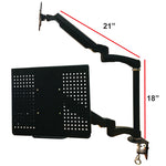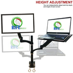 • Gas spring hovering system gracefully adjusts height of monitor and laptop.