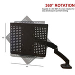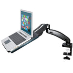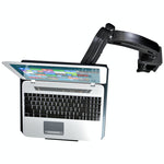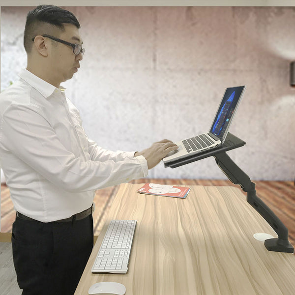 Laptop desk mounts help reduce the risk of back and neck pain that is common with sitting too many hours in an incorrect body posture. By raising the laptop to an ergonomic height you can create large desk space while lifting the screen to an optimal height. Full motion allows the user to move the laptop closer, as well as turn it left and right.