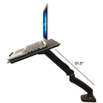• FULL-MOTION: The arm holding the laptop tray can be moved up and down on the vertical pole. The arm measures 21.5. arms allow the tray to swivel/articulate left to right and towards or away from the user. The tilt angle of the tray can also be adjusted.