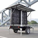 4m2 solar mobile led trailer is equipped with inertial device and hand brake, and it can be towed to move by a car to do broadcast and publicity. The mechanical structure of manual supporting legs is easy and fast to operate.