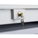 A: A lockable drawer is included for safely storing documents or equipment.