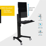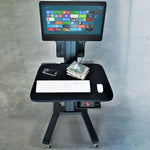 The MCT09 Mobile Computer Cart is designed as a versatile hospital mobile workstation. Its key features include lockable casters to prevent accidental movement during point-of-care tasks, a sturdy aluminum and metal construction, and integrated cable management. It is an ideal solution for healthcare facilities looking for a budget-friendly and durable mobile office solution.