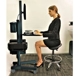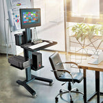 The MCT09 Point of Care Cart is built to handle heavy medical equipment. It has a maximum weight capacity of 70 kgs. The unit is constructed with a durable aluminum column and a metal base, ensuring stability even when fully loaded with a computer, monitors, and optional accessories.