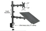 Elevate your work to a more comfortable and ergonomic position so you can enjoy ending the day without soreness. With this stand's long arms and fluid articulation, finding the optimal angle is easy. High-grade steel and aluminum construction along with the heavy-duty C-clamp and optional grommet ensure your laptop and monitor will be kept secure. The mount supports VESA 75x75mm and 100x100mm hole patterns, supporting the majority of laptops and monitors on the market.