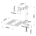• Single monitor mount fits most flat screens with VESA sizes of 75x75 mm or 100x100 mm, VESA plate is quick fit and detachable for easy installation, laptop tray holds most laptops with VESA size of 100x100 mm, its venting holes help to keep your laptop cool.