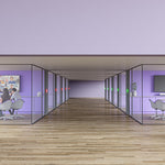 Quickly find an open room through coloured LED lights that show availability at a distance.
