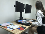 • DUAL MONITOR WORKSTATION- Fits screen size from 17” to 32” with VESA compliant 75x75mm - 100x100mm. The monitor mounts are full-motion (tilt up and down, swivel left and right, rotate 360 degrees between landscape and portrait) to allow the perfect monitor angle adjustment.